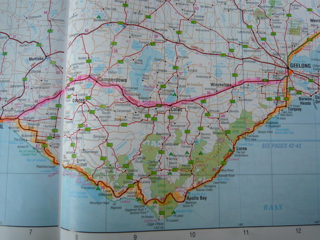 Heute fuhren wir auf dem Great Ocean Road von Warrnambool bis Geelong ca. 350 km. (orange Route)